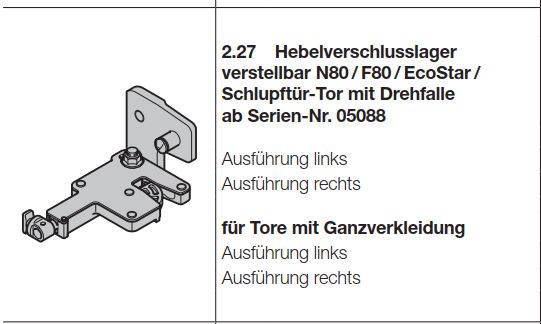 Hörmann Hebelverschlusslager verstellbar N80 / F80 / EcoStar / Schlupftürtor, links, Tore mit Ganzverkleidung