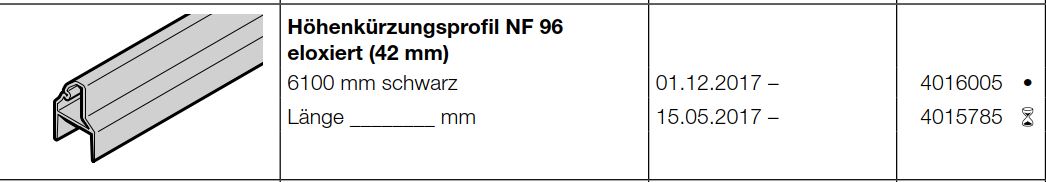 Hörmann Höhenkürzungsprofil NF 96 eloxiert (42 mm) Meterware, der Baureihe 40 (Privattor)