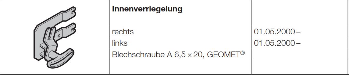 Hörmann Innenverriegelung links (von innen gesehen) für Baureihe 40