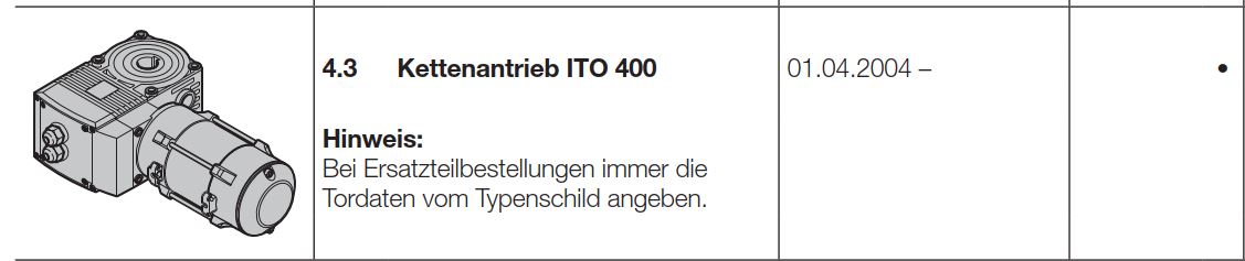 Hörmann Kettenantrieb / Ersatzantrieb für ITO 400