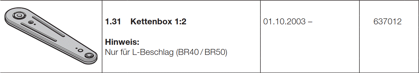 Hörmann Kettenbox 1 : 2 nur für L-Beschlag BR40, BR50, BR 60