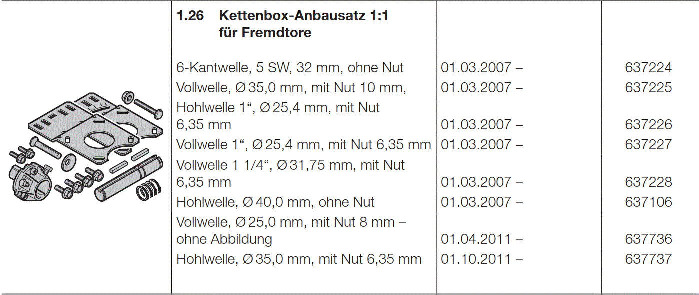 Hörmann Kettenbox-Anbausatz 1:1 für Fremdtore Sechskantwelle, 5 SW, 32 mm ohne Nut