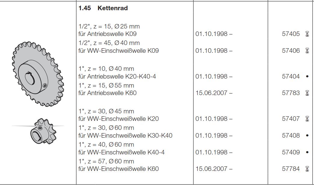 Hörmann Kettenräder für Roll und Rollgittertorantrieb