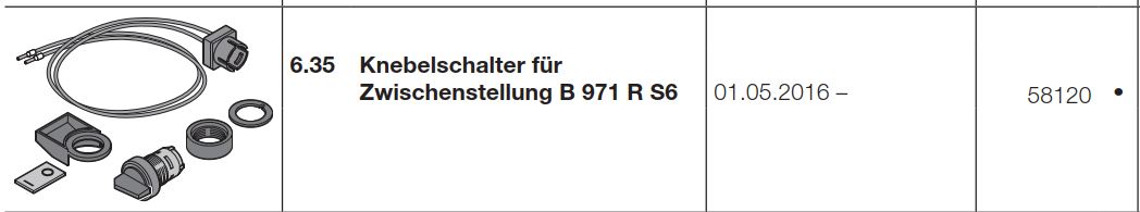 Hörmann Knebelschalter für Zwischenstellung B 971, R S6