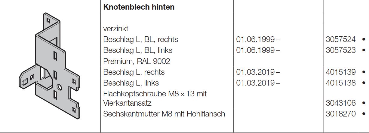 Hörmann Knotenblech hinten, Beschlag L, BL, rechts für Baureihe 40 LPU 67 Thermo