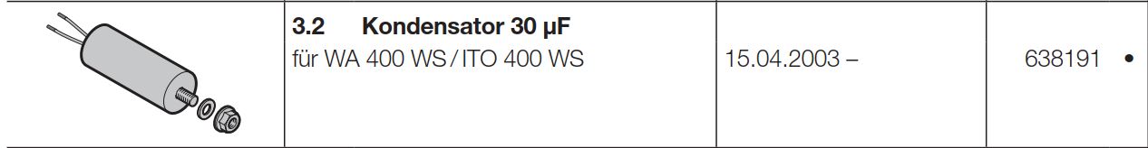 Hörmann Kondensator 30 μF für WA 400 WS / ITO 400 WS