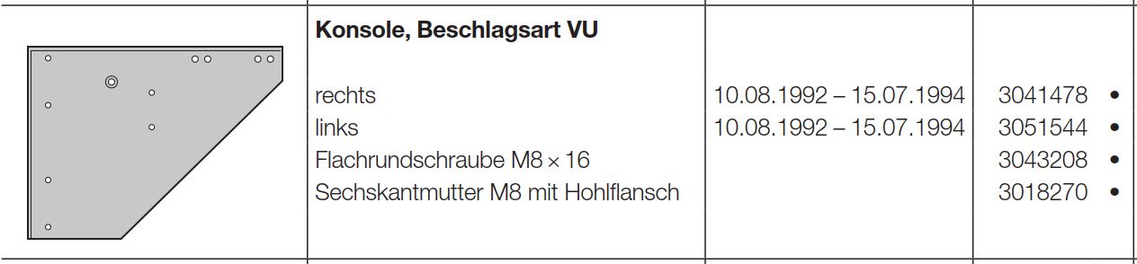 Hörmann Konsole Beschlagsart VU links für die Industrietor Baureihe 30