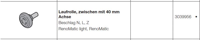 Hörmann Laufrolle mit 40 mm Achse, Baureihe 40, RenoMatic, RenoMatic light, 3039956, EcoStar