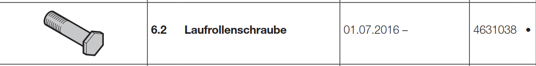 Hörmann Laufrollenschraube Doppelgaragen-Schwingtor N 500