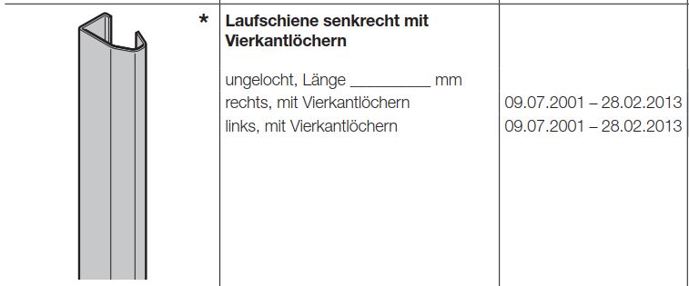 Hörmann Laufschiene senkrecht links, mit Vierkantlöchern für die Industrietor Baureihe 40-50