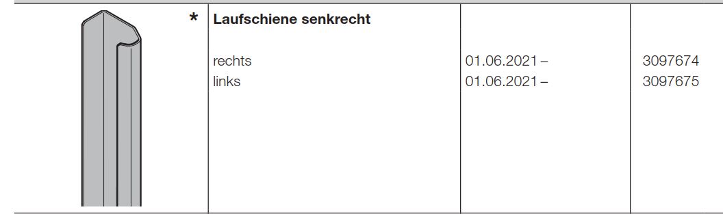 Hörmann Laufschiene senkrecht rechts für Industrietore-Baureihe 60