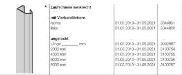 Hörmann Laufschiene senkrecht ungelocht, Länge 4000 mm, für Industrietore-Baureihe 30,40,50