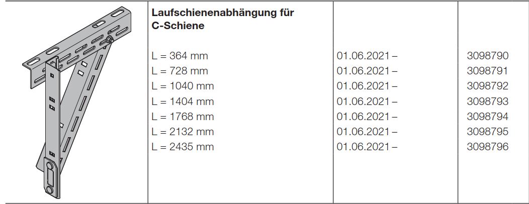 Hörmann Laufschienenabhängung für C-Schiene L = 1040 mm Baureihe 60