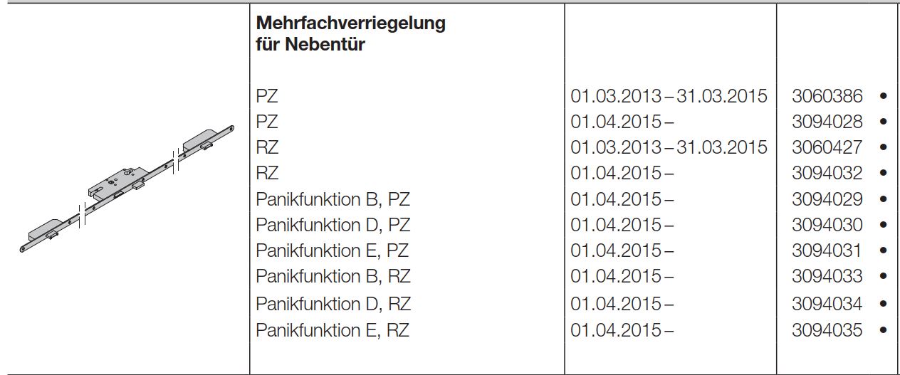 Hörmann Mehrfachverriegelung für Nebentüren Panikfunktion E-PZ und Profilzylinder für die Industrietorbaureihe 50