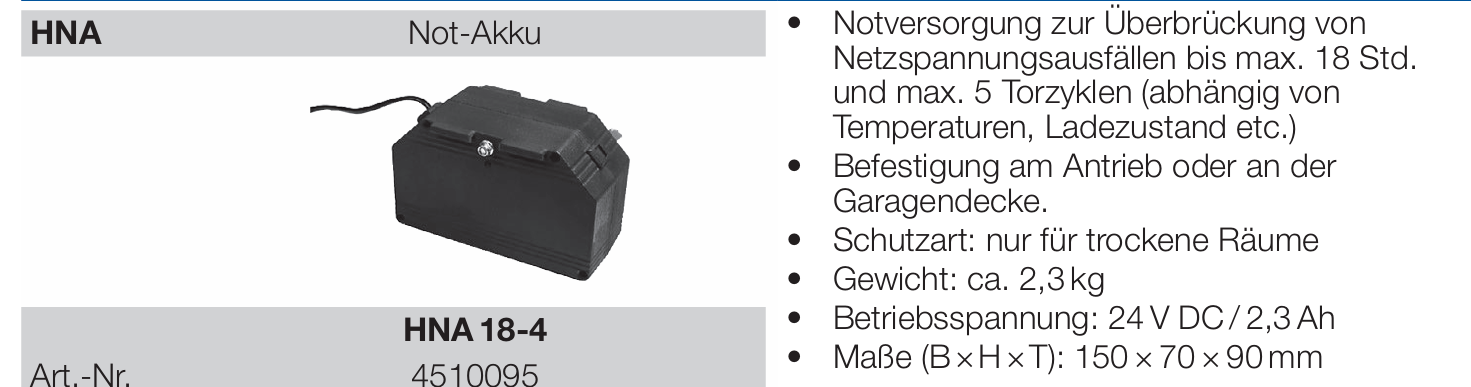 Hörmann Not-Akku HNA 18-4, Artikelnummer 4510095