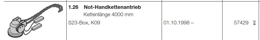 Hörmann Not-Handkettenantrieb für Steckantrieb S23-Box-K09