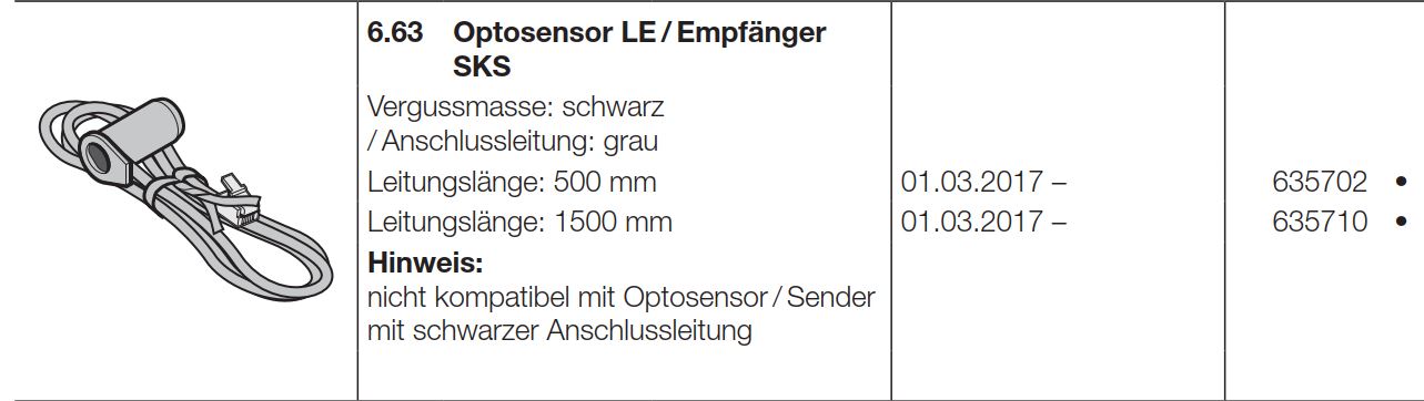 Hörmann Optosensor LE / Empfänger SKS Vergussmasse schwarz / Anschlussleitung grau Leitungslänge 1500 mm