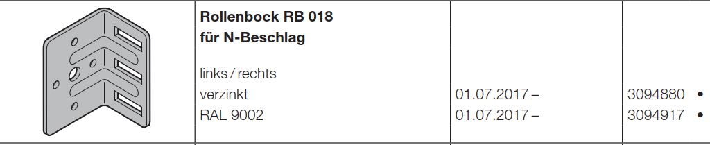 Hörmann Rollenbock RB 0218, für N-Beschlag verzinkt DIN rechts / links Baureihe 40, LPU 67 Thermo