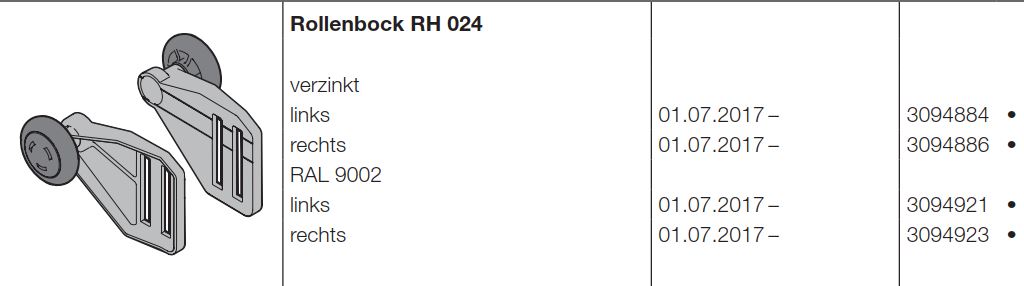 Hörmann Rollenbock RH 024, RAL 9002, DIN rechst, Baureihe 40, LPU 67 Thermo