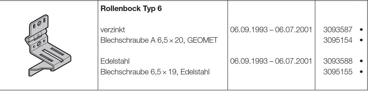 Hörmann Rollenbock Typ 6 Edelstahl Beschlag H für Baureihe 30-40 und Industrie-Baureihe 30-40-50