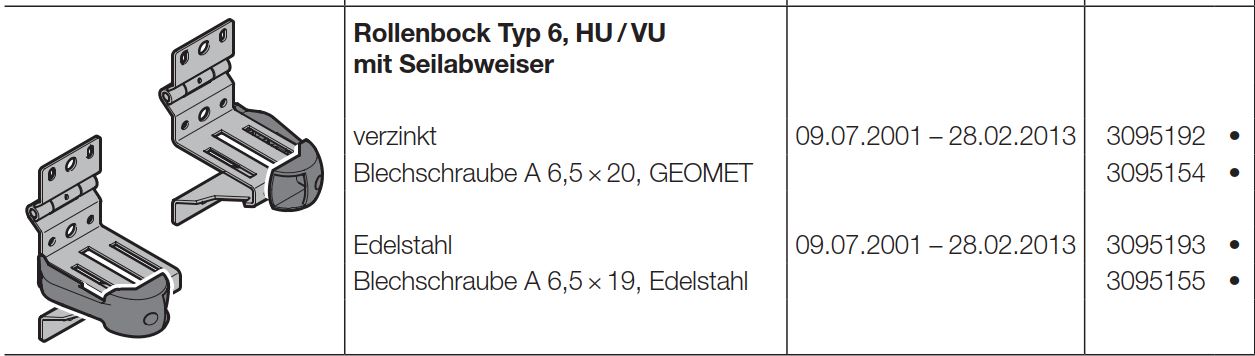 Hörmann Rollenbock Typ 6 HU-VU mit Seilabweiser Industrie-Baureihe 30-40-50