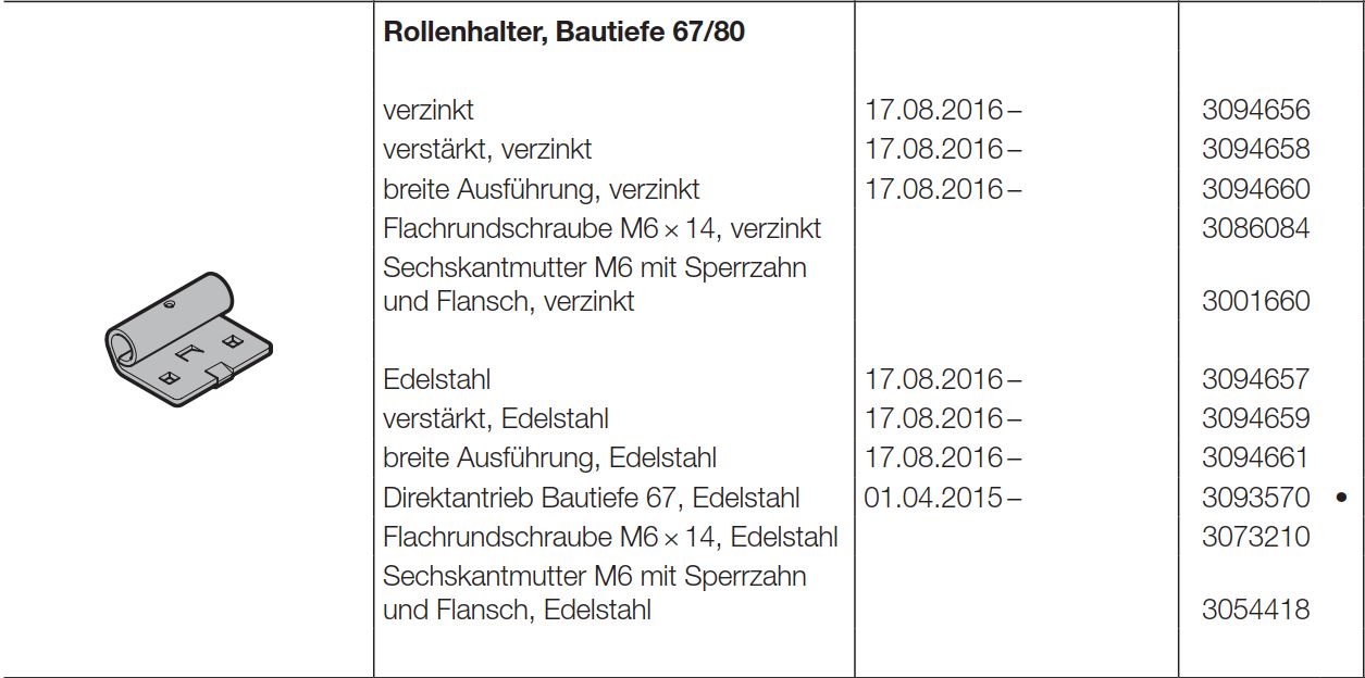 Hörmann Rollenhalter Bautiefe 67-80 breite Ausführung für die Industrietor-Baureihe 50, 3094660
