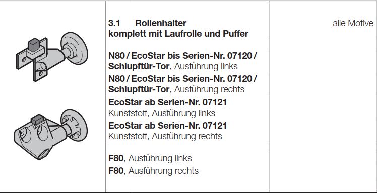 Hörmann Rollenhalter komplett mit Laufrolle und Puffer, EcoStar Ausführung links