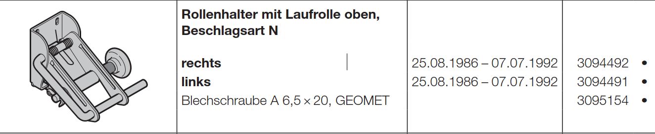 Hörmann Rollenhalter mit Laufrolle oben links Beschlagsart N neu-von innen gesehen Industrietorbaureihe 20