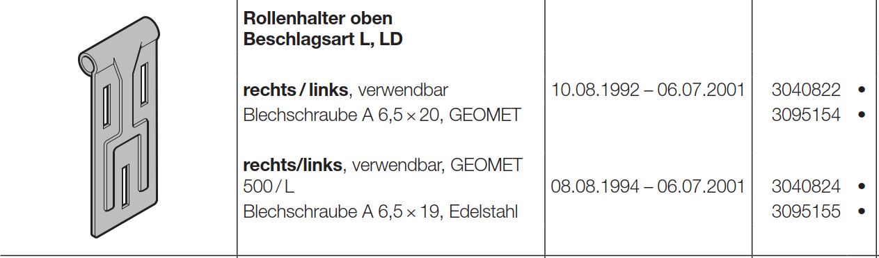 Hörmann Rollenhalter oben Beschlagsart L, LD für die Industrietorbaureihe 30
