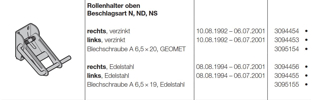 Hörmann Rollenhalter oben, links, KR003, Beschlagsart für Baureihe 30, 40 und Industrie-Baureihe 30, 40, 50