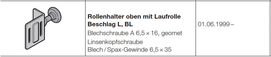 Hörmann Rollenhalter oben mit Laufrolle Beschlagsart L, RC2 links, für Baureihe 40