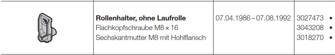 Hörmann Rollenhalter ohne Laufrolle für Sektionaltore LTE und LPU der Baureihe 20