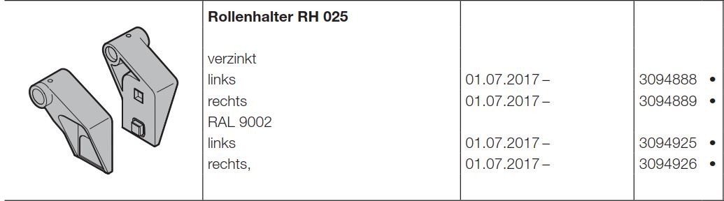 Hörmann Rollenhalter RH 025, verzinkt DIN links, Baureihe 40, LPU 67 Thermo