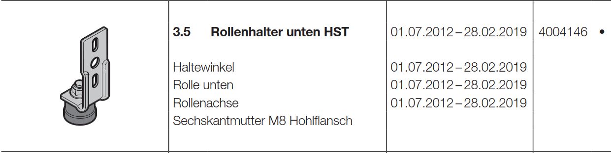 Hörmann Rollenhalter unten BR 10 (HST42) Seiten-Sektionaltor