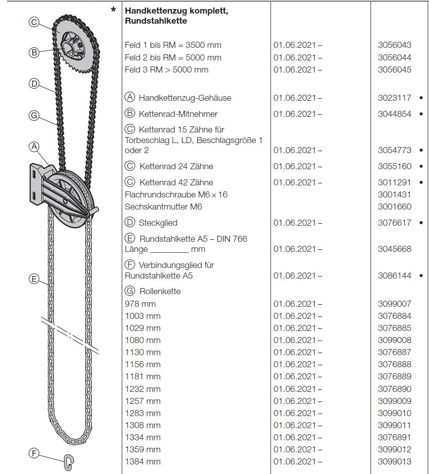 Hörmann Rollenkette für Handkettenzug komplett mit Rundstahlkette