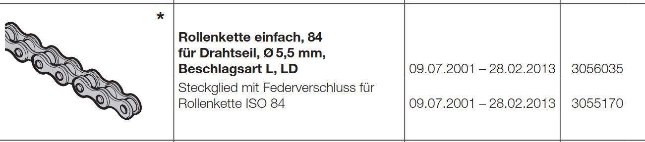 Hörmann Rollenketten Steckglied mit Federverschluss für Rollenkette ISO 84