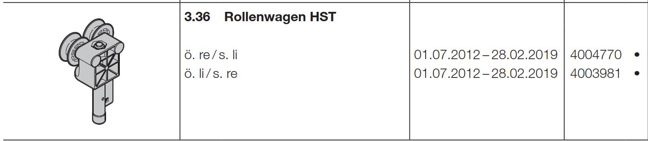 Hörmann Rollenwagen HST, öffnet rechts / schließt links, Seiten-Sektionaltore