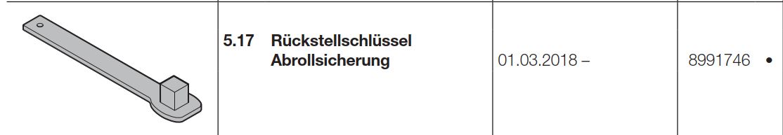 Hörmann Rückstellschlüssel Abrollsicherung HG 75 TD