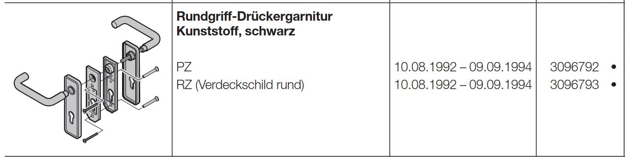 Hörmann Rundgriff-Drückergarnitur Kunststoff schwarz RZ (Verdeckschild rund) Baureihe 30