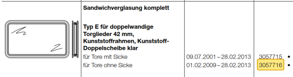 Hörmann Sandwichverglasung komplett, 3057716, Kunststoff- Doppelscheibe klar und 33 mm