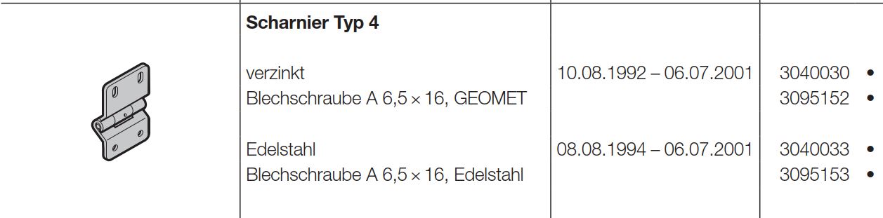 Hörmann Scharnier Typ 4, SA004 Edelstahl für die Baureihen Industrie 30, 40, 50, 60