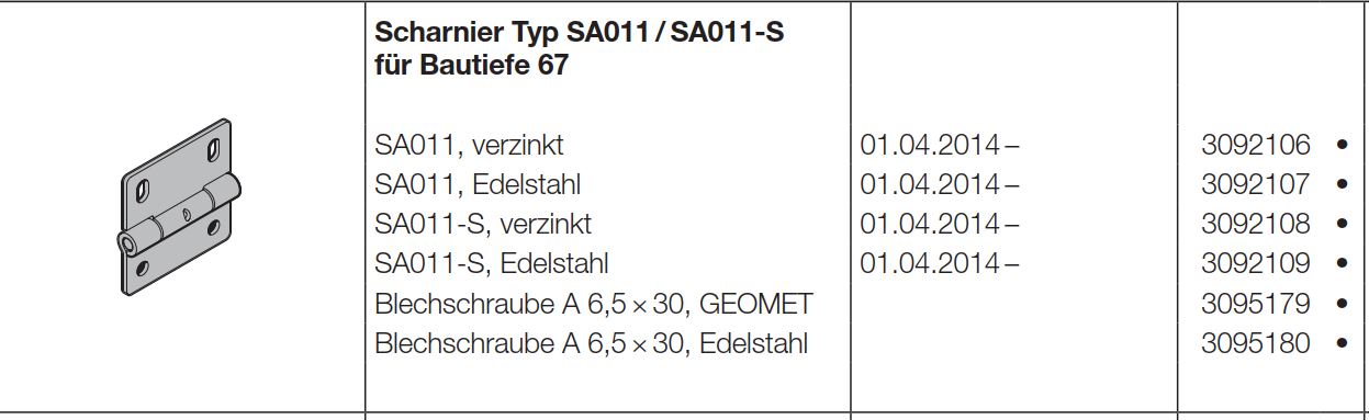 Hörmann Scharnier Typ SA011 Edelstahl für Bautiefe 67 für die Industrie-Baureihe 50