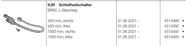 Hörmann Schlaffseilschalter Baureihe 60, L-Beschlag, Länge 450 mm links