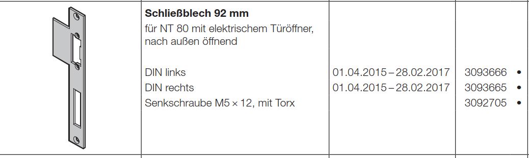 Hörmann Schließblech 92 mm DIN links für NT 80 mit elektrischem Türöffner nach außen öffnend für die Industrietor-Baureihe 50