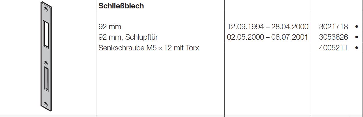 Hörmann Schließblech 92 mm Schlupftür Baureihe 40