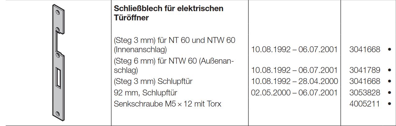 Hörmann Schließblech für elektrischen Türöffner Steg 3 mm für Schlupftür