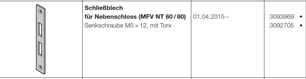 Hörmann Schließblech für Nebenschloss MFV NT 60-80 für die Industrietor-Baureihe 50