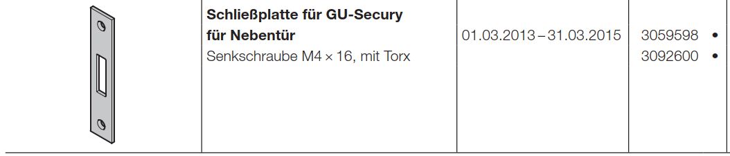 Hörmann Schließplatte für GU-Secury für Nebentür für die Industrietor-Baureihe 50