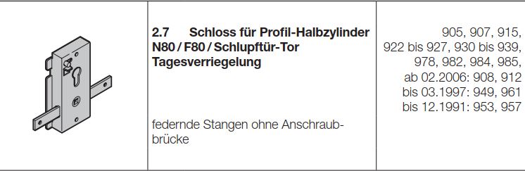 Hörmann Schloss für Profil-Halbzylinder N80 / F80 / Schlupftürtor Tagesverriegelung