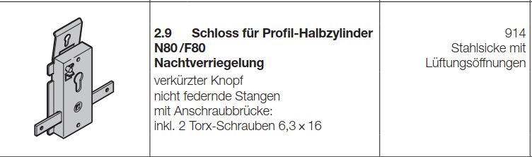 Hörmann Schloss für Profil-Halbzylinder, N80 und F80 Nachtverriegelung